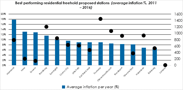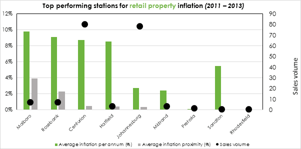 When comparing commercial property growth, Marlboro has experienced retail property inflation of almost 10% during the period 2011 to 2013; 4% of which can be ascribed to the existence of the Gautrain and surrounding properties’ proximity.